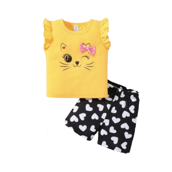 This vibrant yellow T-shirt and shorts set is perfect for sunny days and playful adventures. Featuring a cheerful rainbow and floral design, it brings a touch of joy and color to any child's wardrobe. Made from soft, breathable fabric, this outfit ensures all-day comfort while allowing for easy movement. Ideal for casual outings or playdates, this set is a delightful choice that combines style and fun, making it a must-have for your little one's summer collection.